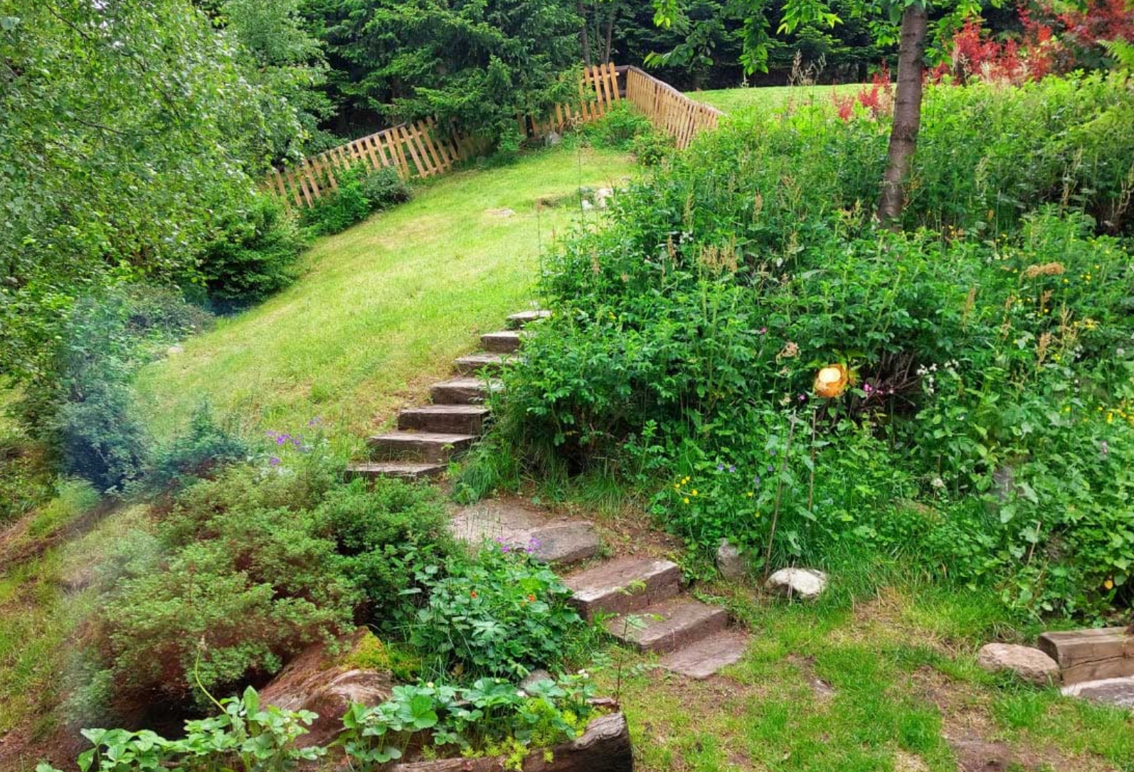 Im Erdgeschoss führt ein separater Eingang in ein grosszügiges, im alpinen Stil eingerichtetes Zimmer mit Wohnbereich sowie Badezimmer mit Dusche. Ebenfalls im Erdgeschoss befinden sich die Waschküche und der Keller.